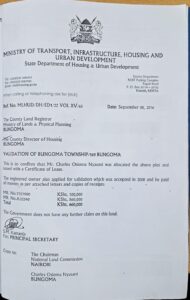 “The land in question is a private property following the validation process, the government allowed Mr.Charles Osioma Nyasani to own the land in which he later sold it to me,” she said.